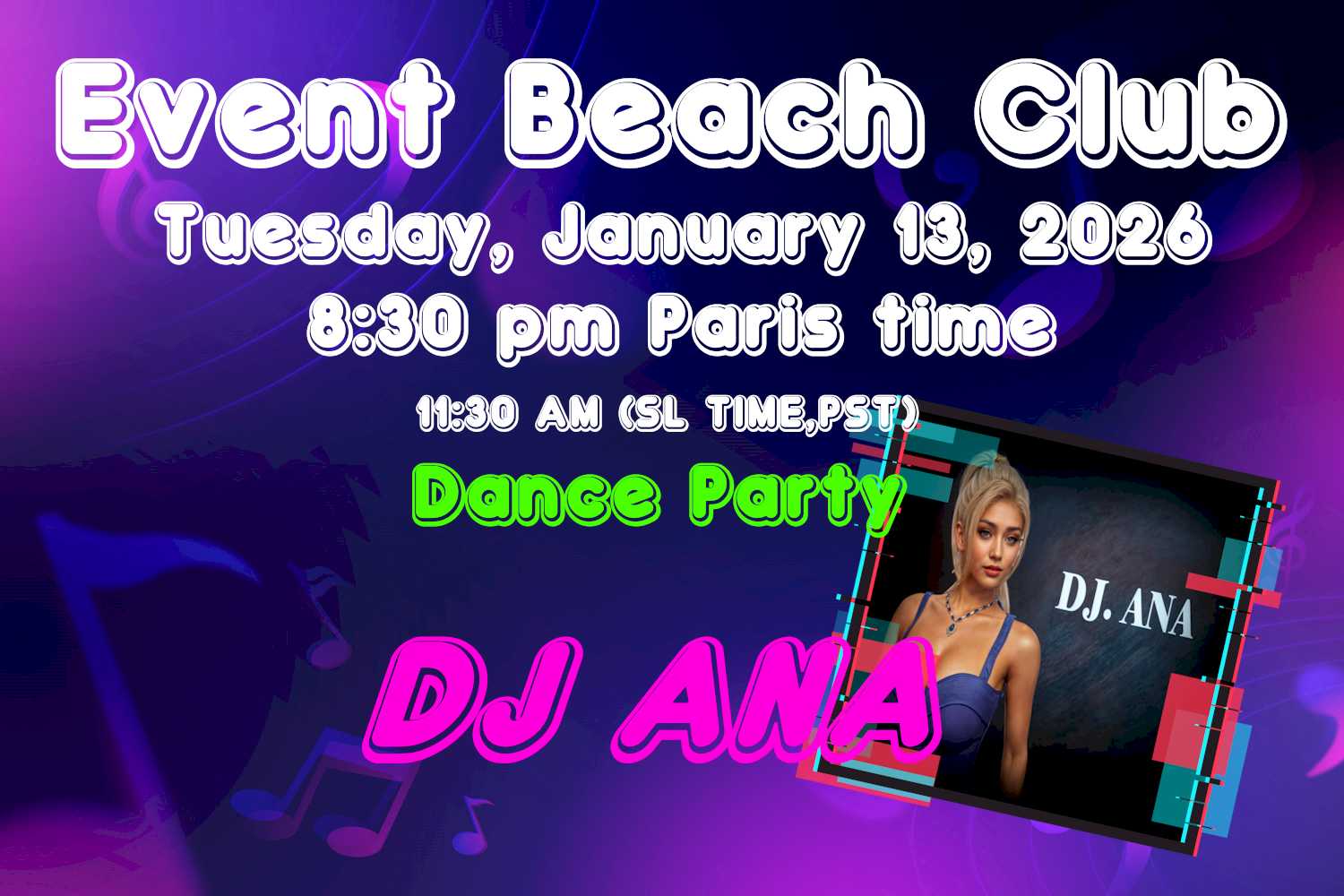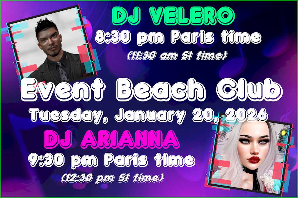 DJ ARIANNA 9:30 pm Paris time (12:30 pm Sl time)